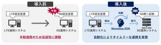 株式会社NTTドコモ(以下、ドコモ)は、ノキア製SON※1システム(以下、MantaRay SON)を導入し、無線アクセスネットワーク(以下、RAN)において、国内で初めて複数ベンダー(以下、マルチベンダー)の基地局装置で構成しているLTEネットワーク※2と連携したノキア製5G基地局装置の運用自動化を実現しました。