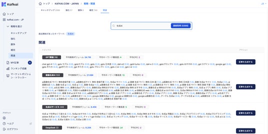 「関連」によって、Kafkaiはデータ駆動型のキーワード分析を強化します。従来のように膨大なキーワードデータベースに頼るのではなく、競争環境に基づいた関連キーワードのクラスターを発見し、より精度の高いコンテンツ戦略を実現します。これにより、企業は本当に価値のあるキーワードに集中し、より効果的なアプローチを取ることができます。