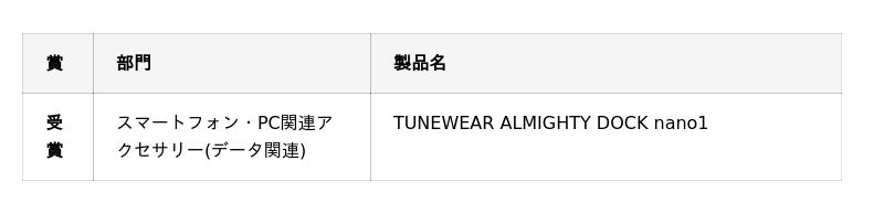 フォーカルポイント株式会社(本社:東京都港区、代表取締役社長:恩田英樹、以下フォーカルポイント)は、株式会社音元出版が主催する国内最大級のオーディオ&ビジュアル機器の総合アワード VGP 2026において、TUNEWEARのALMIGHTY DOCK nano1がスマートフォン・PC関連アクセサリー(データ関連)を受賞したことをお知らせいたします。