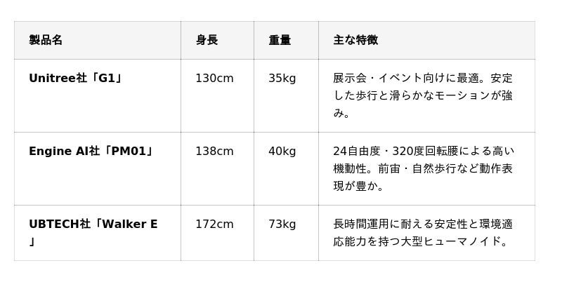 注目は、国内初となるヒューマノイドロボット3種の同時比較展示。来場者は、それぞれのロボットの特性や活用シーンを、実演を通して直接比較することができます。
