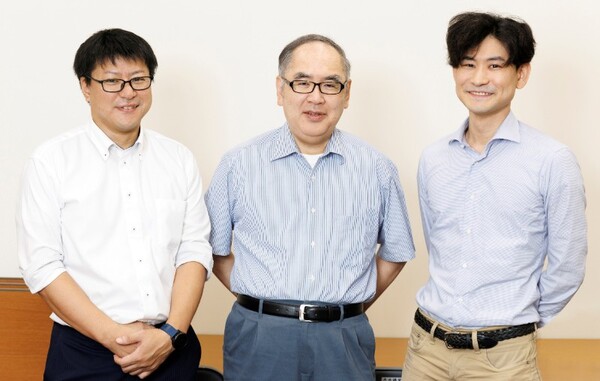 藤井啓太(左)/ナカシマプロペラ株式会社 エンジニアリング本部 装置設計部 課長、川島英幹(中央)/海上・港湾・航空技術研究所 海上技術安全研究所 流体設計系 流体制御研究グループ 上席研究員、新川大治朗(右) /同 実海域性能研究グループ 主任研究員