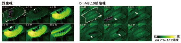 埼玉大学大学院理工学研究科の須田啓助教らの研究チームは、細胞内のカルシウムシグナルと電気シグナルを同時に測定する技術を開発。ハエトリソウの感覚毛で多く発現していて、動物には存在しないたんぱく質DmMSL10が接触刺激を感知する高感度なセンサーとして機能していることを明らかにしました。研究チームは、カルシウムイオンと結合すると緑色の蛍光を発するバイオセンサーを導入したハエトリソウを作製。開発した装置を組み合わせ、感覚毛を曲げた時の応答を調べました。小さく曲げると基部の一部の細胞周辺だけに伝わるカルシウムシグナルと微弱な電気シグナルが発生し、大きく曲げると葉全体の長距離に伝わる強い両シグナルが発生することを明らかにしました。長距離に伝わるシグナルが2 回起こると葉が閉じ合わさりました。さらにDmMSL10遺伝子の機能を壊した株では、大きく曲げても両シグナルが発生しないことも見いだし、実際の生態系を模した環境で感覚毛が虫を感知しづらくなることを明らかにしました。