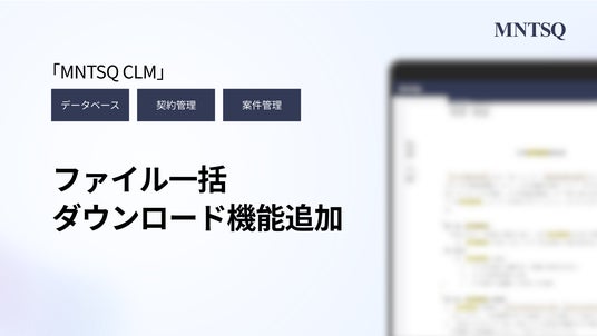「すべての合意をフェアにする」をビジョンに掲げるMNTSQ(モンテスキュー)株式会社(本社:東京都中央区、代表取締役:板谷 隆平、以下「MNTSQ」)は、「MNTSQ CLM」内で提供している全プロダクト(データベース・契約管理・案件管理)に、添付ファイルや関連ファイルなどを、一括でダウンロードできる機能を追加したことをお知らせいたします。