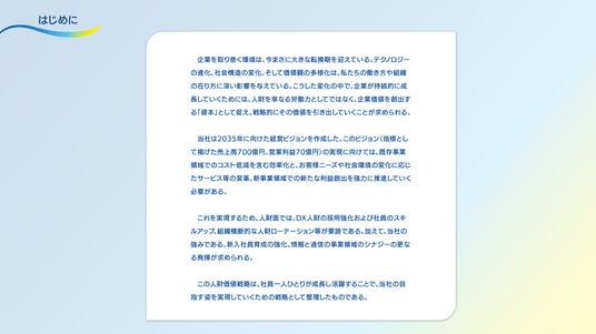 当社は、「あなたの理想」を実現するため、社員一人ひとりが成長し活躍することで、企業の持続的成長と競争力向上につなげ、みなさまから信頼される企業を目指します。