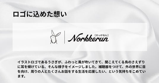 『のっけるん』のロゴには、うぐいす補聴器の原点である「日常の中で音をきく楽しみ」という想いを込めました。