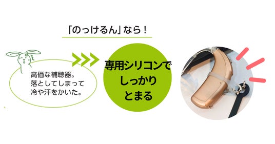 のっけるんはピタっと留まるシリコンパーツで、補聴器をしっかりホールドします。