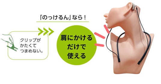 新発想!補聴器・メガネ・イヤホンを“肩にのせるだけ”で守る。落下防止ストラップ「のっけるん」12/1より発売