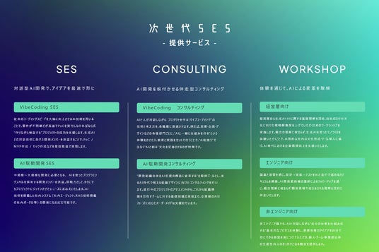 株式会社AI HYVE(本社:東京都渋谷区、代表取締役:北條 敦也、以下 AI HYVE)と、株式会社NEWGATE(本社:東京都新宿区、代表取締役:長田 智明、以下 NEWGATE)は、AIドリブン開発の実装と内製化を両輪で支援するSES・導入コンサルティングサービス『次世代SES』の提供を開始しました。両社の提携により、AI実装に精通したエンジニアのアサイン(SES)、導入コンサルティング、企業・各種部門向けワークショップを一気通貫で提供します。