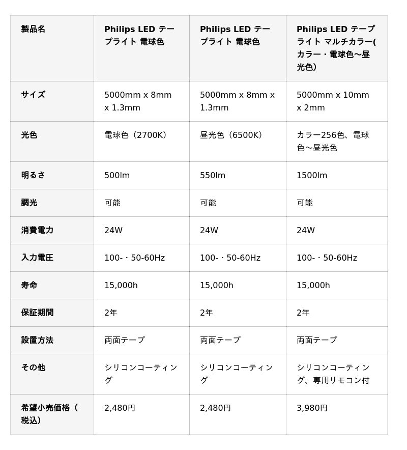 Philips LEDシリーズ初となる「Philips LED テープライト」、電球色/昼光色/マルチカラー(RGBICWW搭載、カラー・電球色~昼光色)の3種を新発売