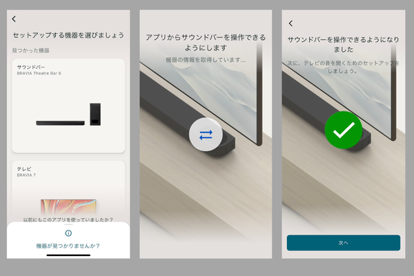 初期設定が面倒くさそうと思うかもしれませんが、これも簡単。スマホ用のコントロールアプリ「BRAVIA Connect」をダウンロードして、初期設定のプロセスをアプリが画面で分かりやすくナビしてくれます。指示通りに進めていけば、あっという間に設定が完了します。