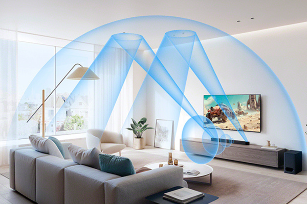 BRAVIA Theatre Bar 6の魅力は、やはりDolby AtmosやDTS:Xといった「立体音響フォーマット」への対応です。これは、前後の音だけでなく、上空からの音(オーバーヘッドサウンド)までリアルに表現できる、次世代の音響技術なんです。