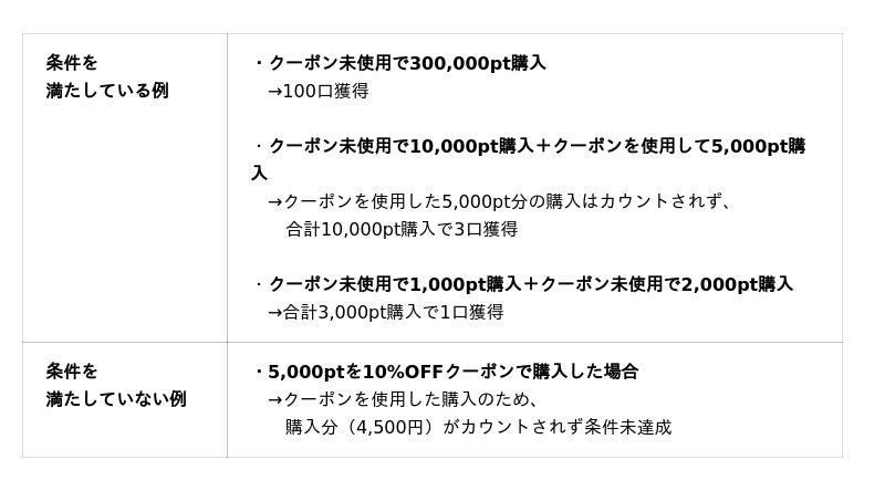 ※ クーポンの適用後、更新や戻るなどの操作で適用が外れる場合があります。 その場合は5分後に再度ポイント購入をお試しください。また、上記操作による補填は致しかねる場合がございますので、ご注意ください。