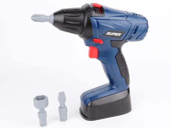 この知育玩具セットの目玉となるだろうものが、電動ドライバー。見た目が似ているというだけでなく、電池(別売)を入れればまるで本物のように動かすことができます。ビットはプラス、マイナス、ソケットの3種類。どれを使っても付属のネジが回せるという、親切設計です。