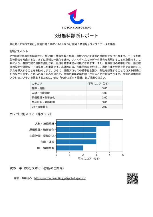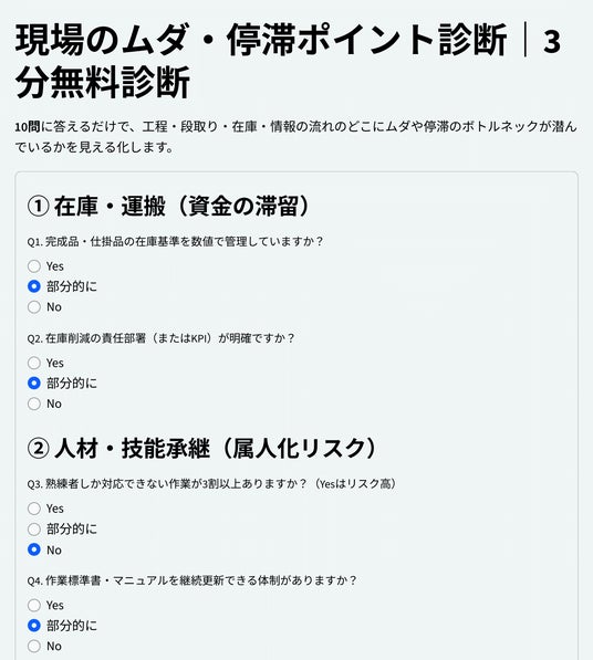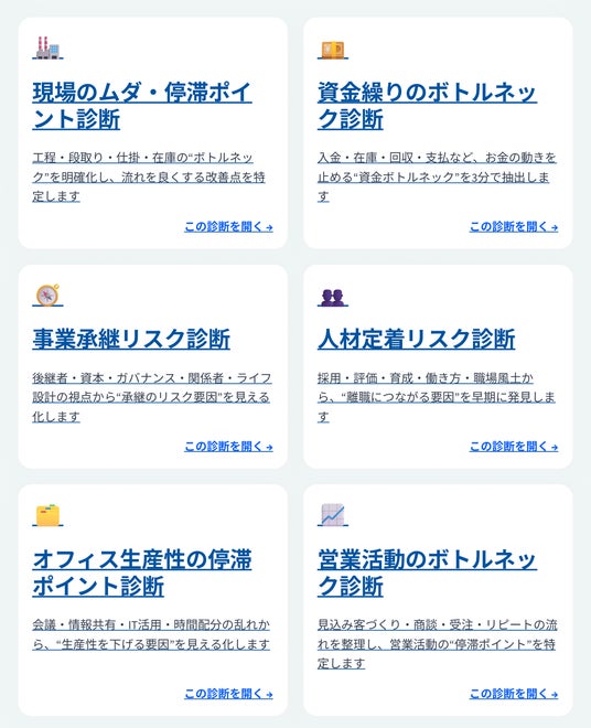 「3分診断ポータル」を公開~10問のセルフ診断×AIコメント×PDF出力で、経営の停滞ポイントを即時発見~