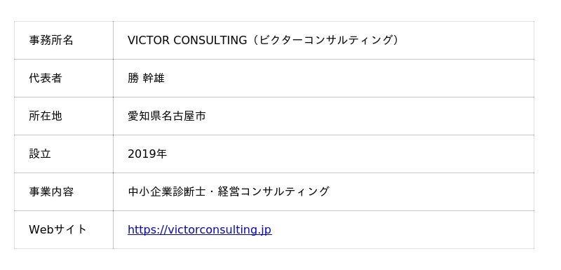 VICTOR CONSULTING(所在地:愛知県名古屋市、代表:勝 幹雄)は、