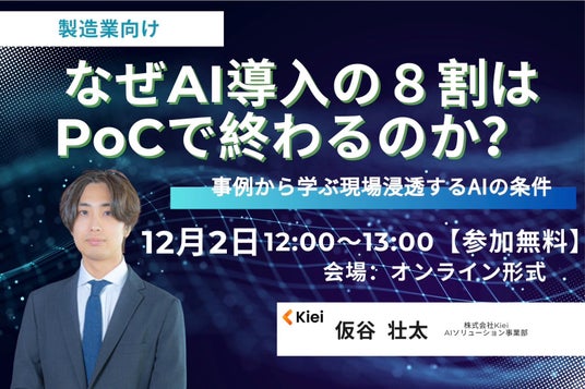 【12/2開催|Kieiウェビナー】AI導入の8割がPoCで止まる理由とは? ― 現場に“定着する”AI活用の実践ノウハウを公開