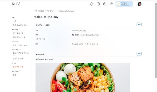 メール送信のテンプレート設定が可能です。