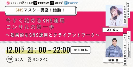 SNSマーケティングを網羅的に学習できる、2025年12月限定「豪華SNSコラボセミナー(全7回)」を開催いたします。