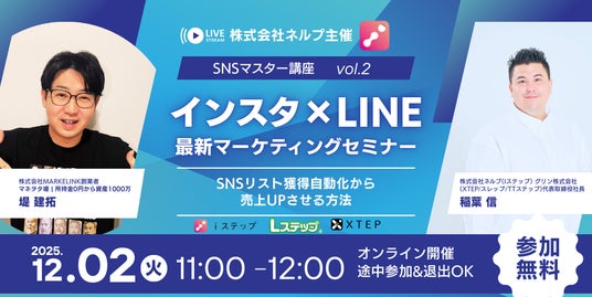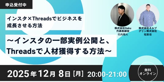 Instagramの自動化×LINEリスト獲得/X(旧Twitter)/Threads運用の最新戦略を学べる「SNSセミナー月間」を12月に開催。全7回・無料で現役SNS豪華講師が登壇します。