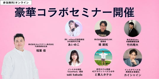 【SNSマーケのプロが集結】豪華SNS講師陣無料コラボセミナー開催決定|令和の虎 完全ALL・稲葉信全7回登壇!ど素人ホテル/カイシャイン/あいめこ/saki kakuda/堤建拓/竹内翔大さんコラボ