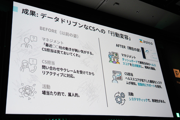 primeNumberによる約半年間の伴走を経て、「解約率の低減」「アップセルの向上」などさまざまな成果が得られた。その中で、田村氏が「最大の成果」と評価したのが「組織・チームの行動変容」だ。