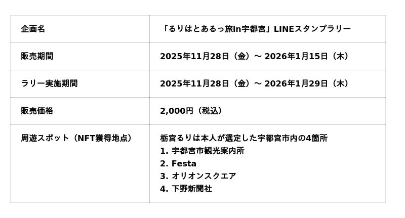 キリフダ、宇都宮市にて行われるスタンプラリーイベント「るりはとあるっ旅 in 宇都宮」にNFTの技術提供