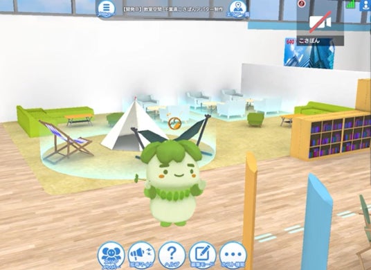 ○メタバース空間は、不登校の児童・生徒にとっての「第3の居場所」として機能し、子どもたちが安心して自分らしく過ごせる環境を提供します。従来の教室空間に加えて今回、児童・生徒が探究学習を行うことができる、屋外をイメージしたイベント広場を新設しました。また、千葉県子どもと親のサポートセンターのマスコットキャラクター「こさぽん」がアバターとして登場し、児童・生徒とコミュニケーションを取ります。