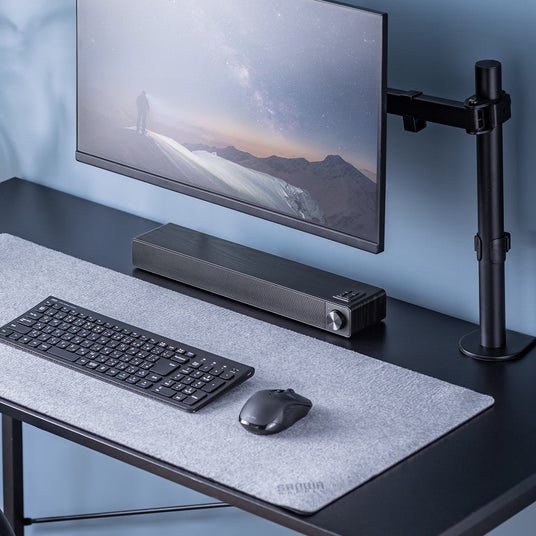 本体の高さはわずか46mm。24インチモニターから40インチテレビまで相性抜群のサイズ感で、画面下へすっきり収まり、視界を遮りません。奥行き・横幅もコンパクトなため、デスクやテレビ台にも自然にフィット。限られたスペースでも快適なオーディオ環境を作り出せます。