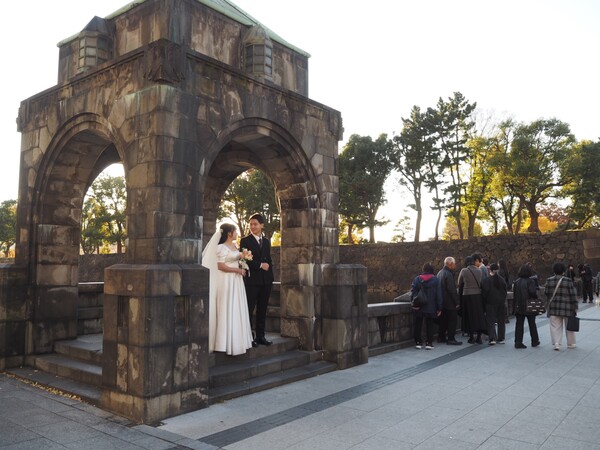 季節を感じながら皇居方面に向かうと、1つめの大きな道路「日比谷通り」を渡ったお堀のところに石造りの重厚なやぐらのようなものが見えてきました。これはなんだろう…?