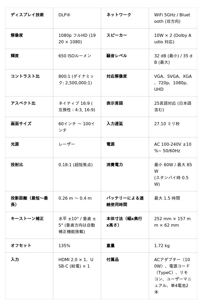 カテゴリー:RGBレーザー搭載 超短焦点型ポータブルプロジェクター