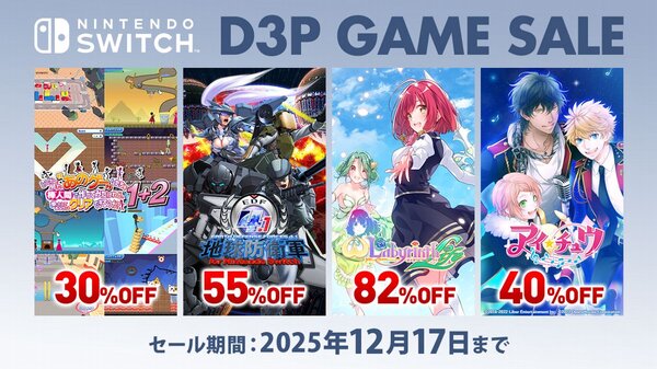 ディースリー・パブリッシャーは11月27日より、ニンテンドーeショップにて同社のNintendo Switchダウンロードソフトがお買い得な「ウィンターセール」を開催。セール期間は、2025年12月17日まで。