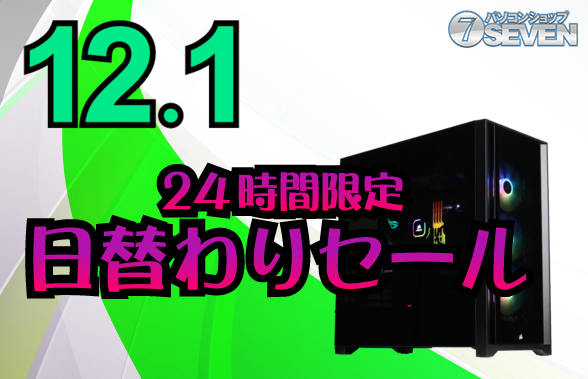 セブンアールジャパンが運営するパソコンショップSEVENは、12月1日に『2025/12/1 24時間限定セール』を実施する。セールは12月1日0:00から23:59まで行われ、最新のゲーミングPCやデスクトップPCが最大で95,000円オフになるという特別なイベントだ。