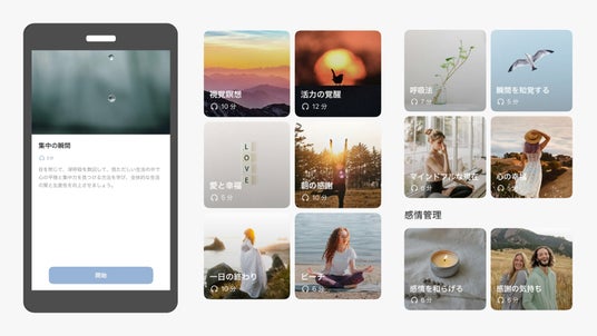 呼吸法・瞑想・リラクゼーションコンテンツも提供。