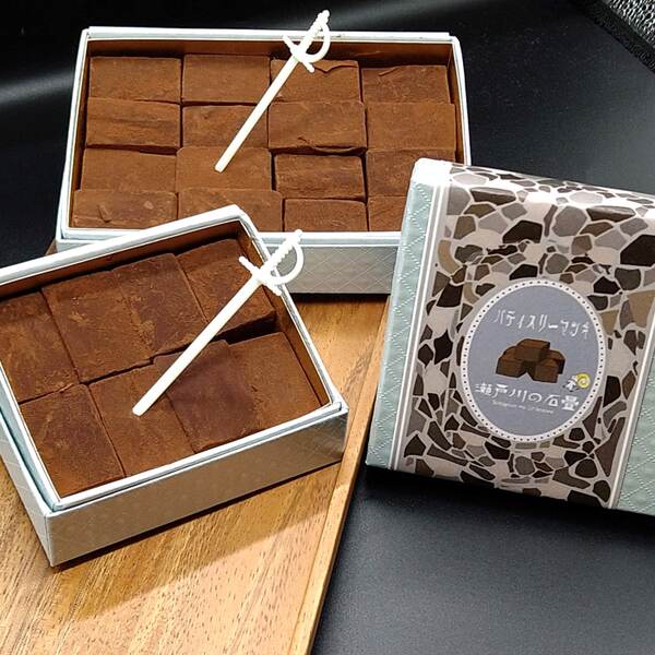保存料や香料を使わず、シンプルな素材で作る「瀬戸川の石畳生チョコレート」は、おすすめのおみやげのひとつ。飛騨を流れる瀬戸川と石畳の道をイメージした人気商品です。いちご味と抹茶味もあるので、お好みで選べます。