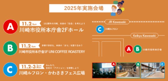 昨年の市制100周年を契機に立ち上がった、産・官・学・民で「川崎から未来を共創する」取り組みを今年も継承し、2025年のテーマ「あたらしい自分、川崎ではじまる」のもと、未来の新しいアクションを構想する“カンファレンス”では、著名人・専門家による全14セッションを開催。さらに、そのアクションを実験・体験できる15の出展ブースで構成された“フェスティバル”も同時に展開しました。