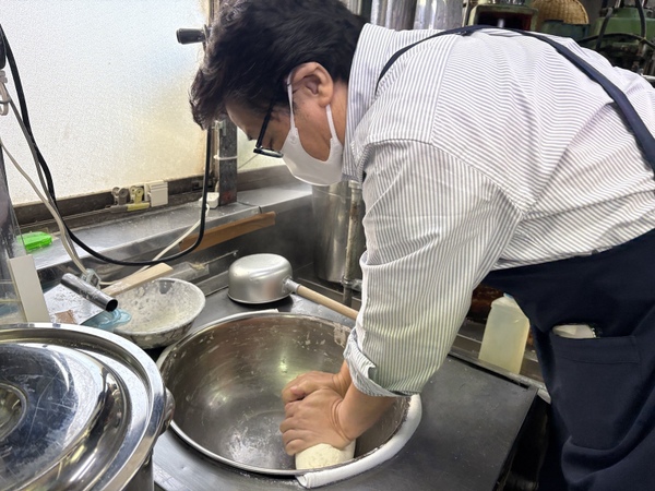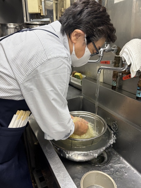 お父さんが創業者という専務の青木さんが出迎えてくれました。現在はお兄さんが社長を務め、雅彦専務が広報も兼ねて、兄弟でお店を切り盛りしています。しかもなんと 冷麺を作る過程を見せていただけることに!