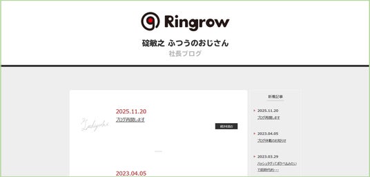 IT機器のリユース事業を展開するリングロー株式会社(本社:東京都豊島区、代表取締役:碇敏之、以下リングロー)は、休止していた「碇敏之 ふつうのおじさん 社長ブログ」を再開いたします。