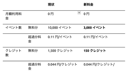 バンドル分を超過した分は、引き続き、従量課金(クレジット:0.044円 / イベント:0.11円)でご利用頂けますので、小規模PoC等でもこれまでと変わらずにご活用頂けます。