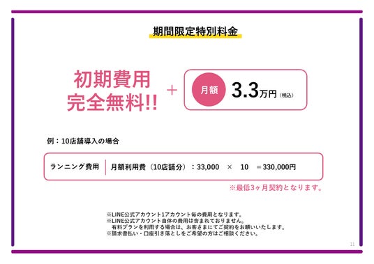 ※LINE公式アカウントの利用料金は別途発生いたします。