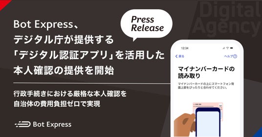 Bot Express、デジタル庁が提供する「デジタル認証アプリ」を活用した本人確認の提供を開始。行政手続きにおける厳格な本人確認を、自治体の費用負担ゼロで実現