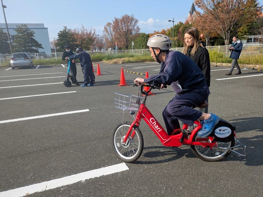 また、11月26日にはシェアサイクルと電動シートボードの試乗会が開催され、地域の企業、医療機関の皆さま80名にご参加いただき、利用方法や自転車の交通ルールのレクチャー、電動アシスト自転車の試乗をいただきました。