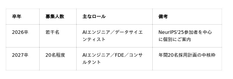 AI事業部では、以下の新卒採用枠を予定しています。