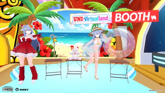 「ユニバーチャルランド」ブースは「遊べる・もらえる」をコンセプトに多くの方のご支援を受けて継続してまいりました。さらに進化したウォータースライダーゲームや連れDANCE♪をお楽しみください。ゲームの特典は、前回Vket2025Summerで「桔梗」に着せることのできる衣装が3万を超えるDL数と大好評でしたので、今回は「沖ドキ!」をモチーフにした「水着」の他に、クリスマスのシーズンに合わせた「サンタ」の衣装をご用意しました。ぜひ無料で交換してSNS[X]で感想や自撮り画像を投稿していただけると嬉しいです。恒例のQUOカードPayプレゼントキャンペーンも予定しておりますので、どうぞお楽しみに!【バーチャルマーケット2025 Winter開催概要】
