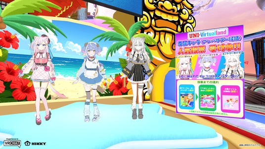 今回初の試みとしてユニバーチャルランド専属キャラクターの人気投票を実施。1位に選ばれたキャラクターは今後の出展で登場するかも!?またポイントのアイテム交換時、人気キャラクター投票にご協力いただいた方には、オリジナル3Dアクセサリー「水着用(浮き輪&帽子)」や「サンタ用(ぬいぐるみ&ステッキ)」をプレゼント!