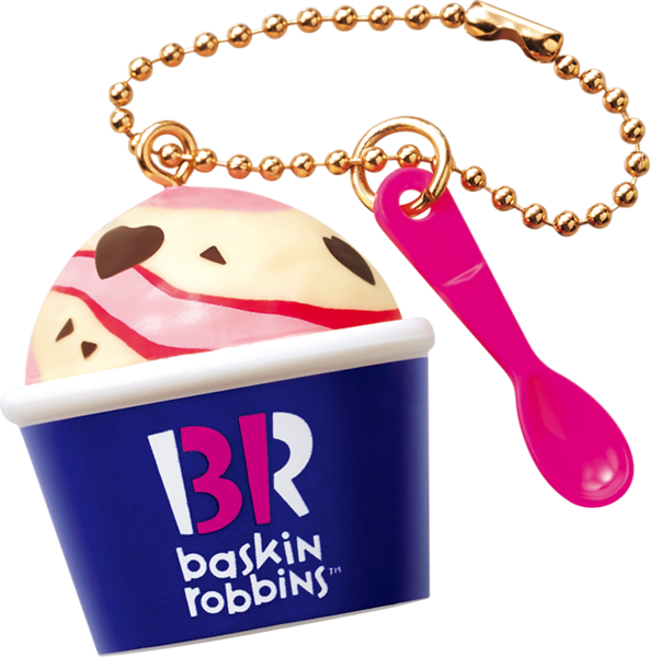 カップ型キーホルダーはラブポーションサーティワンとピンクのスプーンがセットになっています。