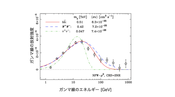 今回の研究で戸谷友則教授チームが注目したハロー領域は、暗黒物質ハローが広がっていると考えられる方向のうち、天体起源の雑音(ガンマ線)が少なく、暗黒物質の信号が最も見えやすい領域だという。