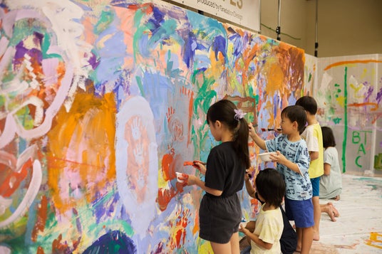 子どもたちと紡ぐ「土佐の美」─特大土佐和紙×漆喰壁画アート巡回展示が高知龍馬空港からスタート