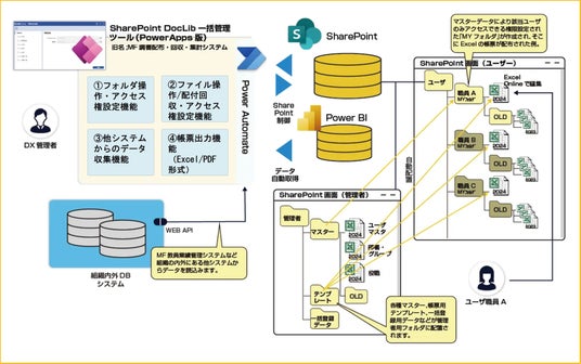 株式会社メディアフュージョン(大阪市)は、Microsoft 365のSharePointとExcel Onlineを活用し、DocLib(ドキュメントライブラリー)のフォルダやファイル操作を一括管理できる「SharePoint DocLib一括管理ツール」を、サーバーレス構成で提供を開始しました。本ツールはWebフォーム開発を不要にし、Excelフォームを入出力画面として利用します。業務システム構築の手間とコストを大幅に削減します。現在、当社のMF教員評価DXシステムでも本ツールが活用されています(▶導入事例の詳細はこちら)。