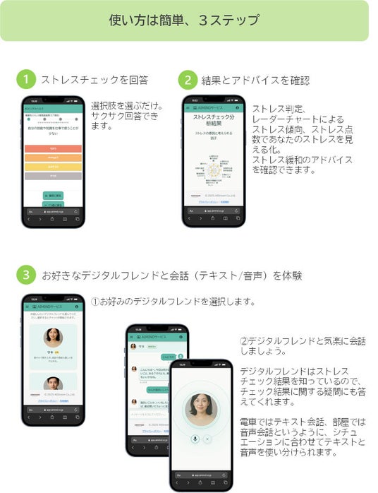 話すだけでストレスケア ー AIがあなたの友達に。楽しく会話しながら、ストレスを“軽くする”新しいメンタルケアを体験