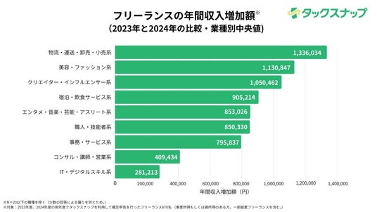 株式会社タックスナップ(代表取締役CEO:田中 雄太、本社:東京都杉並区)は、確定申告アプリ「タックスナップ」を利用しているフリーランス※ 670名を対象に、2023年、2024年の収入と経費の変化を明らかにする調査を実施しました。